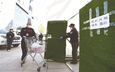 针对北京的境外输入病例持续增长的形势,西北旺镇实施了境外返京人员无缝式衔接转运机制,第一时间成立了机场转运工作专班,由8人分成4组24小时在集中医学观察点值守,负责协调村和社区做好辖区境外返京人员转运、接收等工作。记者了解到,这批境外“客人”多为留学生,他们在集中医学观察期间,需要生活上的照顾会多一些。有的家人送来日常生活用品,工作人员就要穿好隔离服,佩戴口罩、护目镜,穿上鞋套,戴好手套,全副武装将这些生活用品送到集中观察区域隔离人员手中。