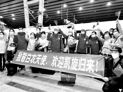 3月25日21时10分,由中国铁路北京局集团有限公司北京客运段值乘的G68次列车缓缓开进北京西站,在抵京的人群中,有一群特殊的旅客,他们是来自北京中医药大学东直门医院、东方医院和中国医学科学院检测队的援鄂医疗队,共计60余人。本报记者 彭程 摄影报道