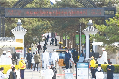 昨天是清明祭扫第二个高峰日,记者从北京市民政局获悉,截至昨天17时,全市223处祭扫点共接待群众53424人,同比去年下降92%。记者在八宝山人民公墓看到,在入园口设计预约快速通道,在此检验祭扫家属身份、测量体温、登记信息,由于采取预约祭扫人流量明显比往年减少,秩序井然有序。