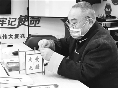夫妻俩在担任社区一线防疫志愿者之余,还探索把防疫志愿经历融入非遗艺术创作之中。“‘小灯张’的小宫灯通常以十二生肖为主题元素。此次我和老伴合作,我制作灯笼框架,老伴把十二生肖和防疫的标语剪出来,最后合二为一,防疫灯笼就制作出来了。”张双志说。因为这次制作灯笼数量多,社区特意把闲置的活动室打扫出来,作为临时“工作室”。戴上老花镜,设计剪纸图样,扎龙骨,糊灯笼面,拴挂绳……每个步骤有条不紊,夫妻俩配合默契。经过两天赶制,防疫灯笼一一制作出来。“我们想把这些灯笼送给社区工作人员,挂在社区防疫值守岗位上,感谢社区工作人员抗疫防控期间的辛勤付出,也希望通过这种方式号召大家不松劲,争取最后的胜利。”张双志说。