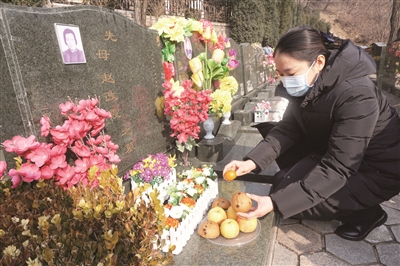 清明节期间,疫情防控不可放松。3月31日,北京市八达岭陵园服务人员来到墓碑前为预约客人擦碑代祭鲜花。记者了解到,为减少到陵园实地祭扫人员总量,八达岭陵园提供了“预约代扫”服务,满足群众祭扫需求。