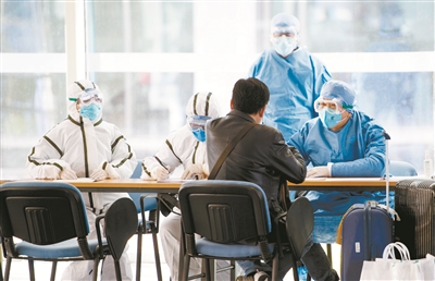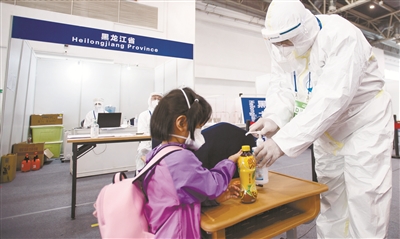 走进新国展,“欢迎回家”“祖国陪你共渡难关”的宣传标语随处可见。穿着防护服的工作人员在场馆中奔波忙碌。据了解,根据旅客目的地,新国展集散点分为北京旅客登记区和外省市的旅客登记区。为做好人员登记转运和服务保障工作,各省区市、北京市各区第一时间成立工作专班,选派优秀骨干力量驻守集散点,不分昼夜迎接归家的人们,建立起“点对点、手递手”的闭环防控体系,全力做好入境进京人员的安全转运和服务保障工作。