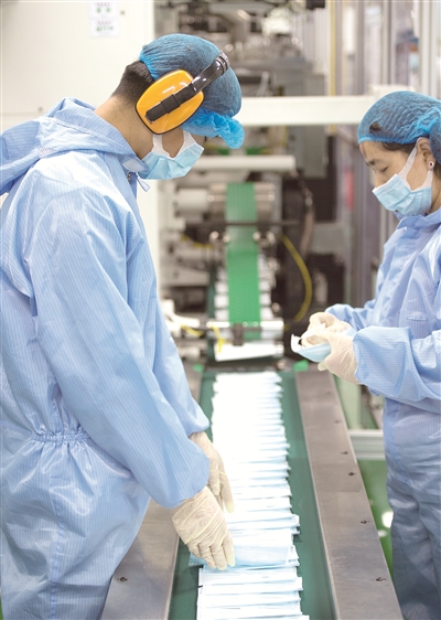 驱车100多公里,记者来到位于北京市延庆区的联合益康(北京)生物科技有限公司(以下简称联合益康)车间,口罩生产线正全速运转。
