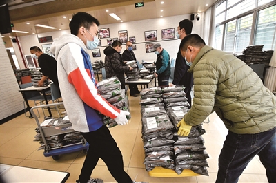 3月底,北京市教委通知,全市中小学将于近期开始进行线上学科教学活动,新学期的教材将于4月13日前发放到位。为方便学校在疫情防控期间发放教材,北京邮政特别推出了教材寄递服务,由EMS人员上门取书专车拉运,采取专区分拣方式确保安全卫生,并按址封装投送到户,以更好地避免人员聚集。