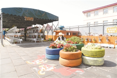 4月16日,在二里庄社区内的屋顶花园,社区工作人员在修剪植物。近日,位于海淀区学院路街道二里庄社区内的社区屋顶花园建成,为居民增添了休闲放松的空间。屋顶花园由二里庄社区居民与“二里庄社区营造工作坊”共同参与设计,分为阳光花园认养区、环保酵素存放区、公共活动区、环保再利用区等。