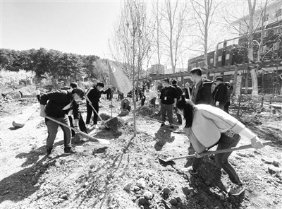 近日,东城园林在境外返京中石化隔离观察点临时党支部,组织部分党团员和中石化培训中心的职工一起分组协作,去除土球包装、翻除土内石块、修坑、放苗、填坑、做树堰、扶直……在院内山脚下栽植了柿子树、西府海棠、桃树、紫藤等几百株苗木。