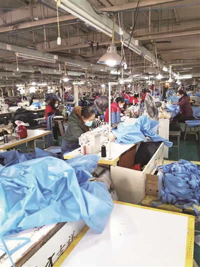 生产一线也是战“疫”前线,当上级领导问到书记孙玉冰,“你们目前有什么需要解决的困难吗?”她摇摇头说:“没有,就是时间不够用啊。在复工后这一段时间,我们车间职工有多辛苦我看在眼里,每天不到7点,就有职工开始进入车间干活了,周六也得加班。时间紧任务重,为了生产,大伙是真拼啊,吃个饭能快到3分钟结束,真的很心疼她们,但没有一个人说苦喊累,大伙儿都觉得唯一就是时间不够用,我们想快点、再快点的多出产量,我们多做一件隔离服,一线抗疫战士就减少一分感染,就能为抗疫防控多出一份力。”