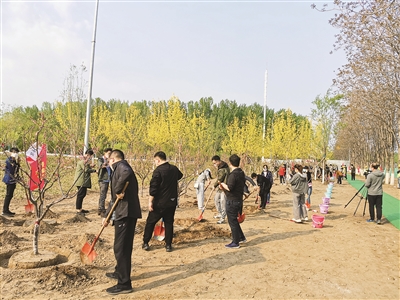 绿意盎然,鲜花争艳,作为城市副中心富有生机活力的地标,城市绿心经过两年时间的建设,也迎来了第一个春天。4月17日,参加党日活动的数十名党员在阳光下见证了城市绿心的新进展,并植下绿树,表达对副中心绿色未来的美好祝愿。