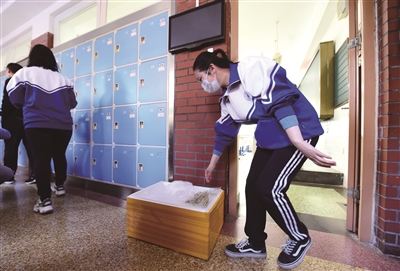 4月18日,北京市第十二中学举行全流程开学模拟演练,实测入校、进教室、上课、午餐、进宿舍、离校等六个师生在校主要活动环节的准备情况。