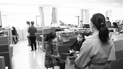 二中教学楼里每个楼层有12-14间教室,但目前只安排4个教学班,班与班之间有足够大的距离,最大限度减少学生之间的聚集。薛丽霞表示,学校安排了校领导、年级组教师和部分职员在各层值守,每层设5个固定岗,负责不同岗位管理,检查内容包括学生是否有扎堆聊天、教室里是否开窗通风、学生打水和如厕时是否保持间距等。