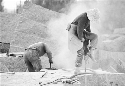那天我去石场,远远就听到钻机的声响。老远望去,有几个身影在飞扬的尘土中忙碌。我喊了一声,就见老李手扶钻机在打眼儿,老四拖着管子。老四停下来朝我挥个离开的手势,那意思是说离远点儿,灰尘大。待他们歇息时,我走过去。