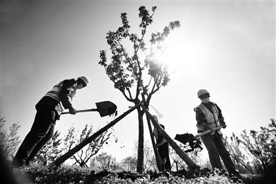 市园林绿化局副巡视员王小平表示,目前正是植树造林的黄金时节,全市各区造林建设全面提速,在确保疫情防控不放松的同时,全面推动复工复产,为完成年度绿化造林任务打下基础。截至目前,今年新一轮百万亩造林绿化全部127个项目中已有103个完成手续办理,进场施工面积10.6万亩,完成植树造林2.6万亩,栽植各类苗木115万株。于佳 摄