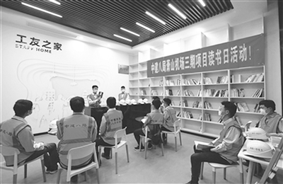 近日,在中建八局总承包公司杭州萧山国际机场三期工程项目部职工书屋里,工友们发起了一场以“推荐好书 提倡阅读”为主题的读书分享会。来自江西宜春的90后工友彭亮分享了自己的读书感悟:“今天我向大家推荐王宇先生的《狼道》,这本书告诉我们,人类无论是在职场中,还是在生活中,面对各种不同竞争,要有不同的智慧,我读完后感悟颇多……”据了解,该书屋占地面积60平方米,拥有图书2000余册,2019年被全国总工会命名为“职工书屋”,现已成为工友空暇时间的好去处。(4月24日《浙江工人日报》)