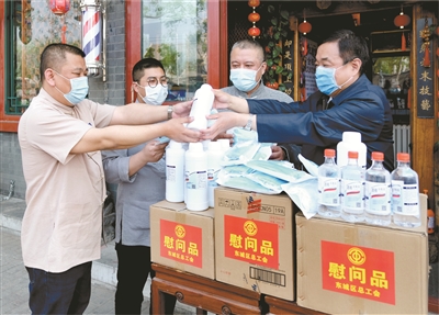 本报讯 (记者 边磊) 27日上午,东城区人大常委会党组成员、副主任、区总工会主席许汇等一行来到交道口辖区内的复工复产小微企业、全国工人先锋号——北京金板寸文化发展中心进行慰问,并送去了口罩、84消毒液和酒精等疫情防控用品。