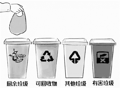 北京将生活垃圾分为厨余垃圾、可回收物、有害垃圾、其他垃圾四大类。