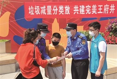 1日,在干净整洁的王府井步行街,记者看到,一名环卫工人推着标识鲜明的垃圾分类保洁车,携带小铲、刷子、镊子、消毒液等工具,沿街清理垃圾。“我这样‘全副武装’,是为了让垃圾不落地,也是让市民现场感受垃圾分类。”当天是生活垃圾管理条例实施首日,环卫工人们自觉地承担起积极向市民、游客普及垃圾分类知识的责任。