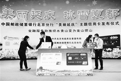 4月30日,邮储银行北京分行“美丽延庆”主题信用卡正式亮相,这是北京地区首款以区级城市形象视觉识别系统设计的主题信用卡。该信用卡除交通出行、线上消费等邮储银行普通信用卡权益外,还将重点围绕文化旅游惠民消费,吸引游客来延庆观光游览,促进地区经济社会发展。本报记者 陈艺 摄影报道