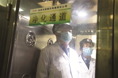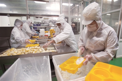 北京天厨餐饮有限责任公司承接了北京中桥外国语学校等12所学校的学生和教职工供餐工作。出示健康码、测体温、洗手消毒、过风淋间……经过重重严格程序,记者跟随执法人员进入天厨餐饮后厨。在检查食品加工区域时,执法人员重点检查了生熟分开、烧熟煮透、厨具清洗消毒、食品进货来源和食品留样情况。同时,还询问了后厨工作人员智能体温计使用情况。“所有原料必须落实进货查验和索证索票制度,菜品出锅时中心温度必须达到70摄氏度以上,确保食材烧熟烧透。”丰台区市场监管局餐饮科姚晓芬叮嘱工作人员。