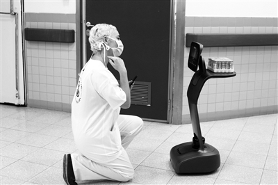 5月12日,在以色列特拉维夫市区附近的谢巴医疗中心新冠治疗科室,医护人员操作一台智能服务型机器人。这款机器人由以色列公司开发,目前正被以色列一些医院和医疗中心使用,以减少新冠疫情期间人与人之间的接触。这款机器人可以在患者之间输送药物,测量患者体温,还可以帮助患者与医护人员进行远程通信。 新华社发