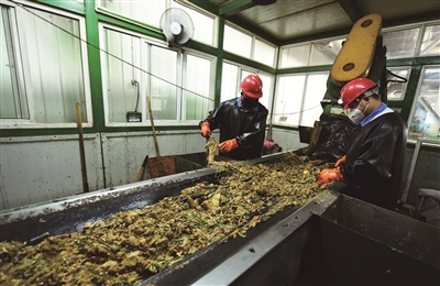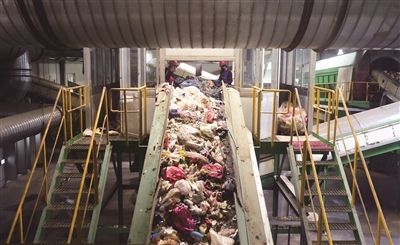 5月9日早上,在位于延庆区的北京首创环境工程有限公司餐厨垃圾卸料间里,王建斌和张绍武两名“分拣师”站在传送带两侧,正仔细地挑出混在餐厨垃圾里的塑料袋。随着传送带的滚动,分拣后的垃圾经压榨脱水后被“喂”到分离器设备里,最终转化为有机肥。