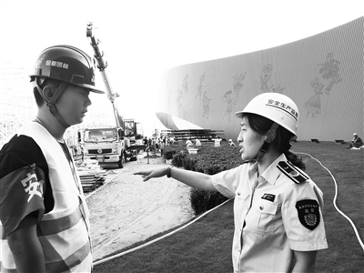 8月的北京天似流火。布展期间劳动力密集、物料高度集中、车辆机械交织,高空作业风险、电气安全风险、临建垮塌风险、焊接作业风险叠加,3家布展单位作业区紧邻,安全监管难度系数较高。