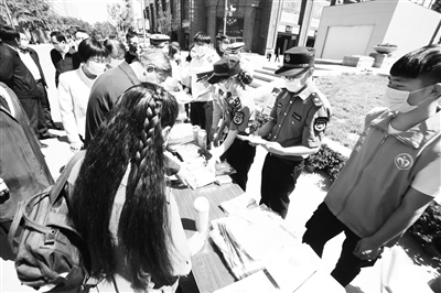 上周,在王府井步行街北段临时展台边上,东华门街道城管执法二队队员拿着一份垃圾分类宣传手册向市民进行讲解。东城城管按照“谁执法、谁普法”的原则,通过摆宣传展台、入门入户询问、检查后厨垃圾投放等方式,全方位开展生活垃圾分类“普法+执法”工作。本报记者 边磊
