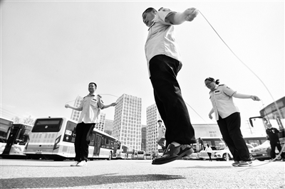 “加油!加油!”昨天上午,加油声和掌声充满了整个公交场站。这是公交客三分公司第十四车队工会组织的工间跳绳比赛。疫情防控期间,车队工会组织干部职工参加体育锻炼,推出乒乓球、羽毛球、仰卧起坐等多种运动,让职工们强身健体。本报记者 于佳 摄影报道
