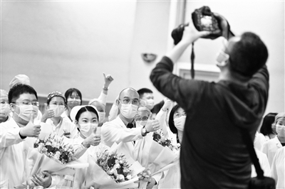 五月燃情,北京普仁医院邀请进入隔离病房的三位青年代表进行宣讲。火线入党医生高贺,“90后”医生盖伦,在感染科病房、发热门诊工作33天的团干部、护士刘晓双,宣讲中他们讲述了自己积极投身疫情防控阻击战,为医疗事业发展贡献青春力量的故事。本报记者 边磊 于佳 摄影报道