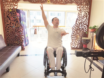 疫情防控期间,李辉带领心之源艺术康复服务中心的小伙伴们每天通过微信、抖音、快手等平台,大量上传轮椅芭蕾形体、有氧健身操、广场舞、民族舞、现当代舞等原创艺术康复教学视频,在直播平台中为大家进行讲解与示范,运用“口传身教”的教学方法,带领学员们居家学习。