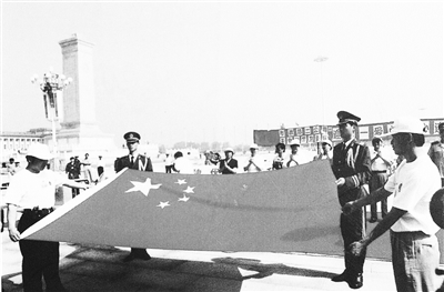 鲜红的五星红旗把天安门广场建设者和保卫者的心紧紧连接在了一起。