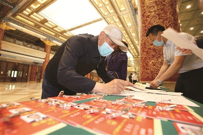 5月20日上午,在北京会议中心,十三届全国人大三次会议北京代表团代表开始报到。图为王全代表在现场报到。(相关报道详见第3版)
