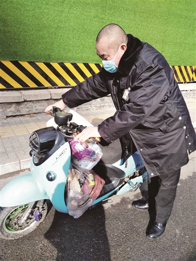 因家家户户居家减少外出,2000多人的小区一下安静下来。居家无小事,日常生活用品的采购是大家十分头疼的问题。物业客服人员通过小区业主群征集居民需购买的蔬菜水果品种,并通过统计计算出订购频率最高的几种,联系了蔬果售卖渠道,为居民争取到合适的价格,按照套餐形式帮助业主们订购蔬果。蔬果到货后,魏进的三轮车堆得满满的。他挨家挨户地去送菜,为了避免接触,满满一大袋蔬菜放在业主门口敲敲门,然后悄悄地离开了。魏进忙碌的身影出现在小区各个角落里,坐骑也经常更换。遇到业主急需购买生活用品时,就骑电动车;平时他更喜欢骑三轮车,因为拉的东西多省时间。大伙儿亲切地叫他“超能快递员”。疫情突袭,魏进肩上的担子更重了,这时有报修电话说污水管漏水,魏进又扛着梯子协助工程维修的师傅去抢修了。