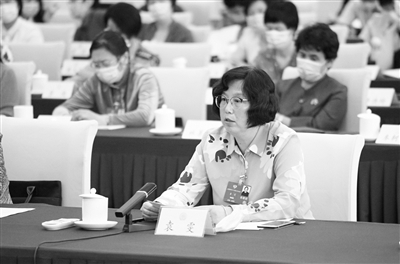 图为5月24日,在妇联界别协商会议现场,委员们围绕“进一步促进家政服务业持续健康发展”的话题,展开了热烈的讨论。这是袁雯委员在发言。