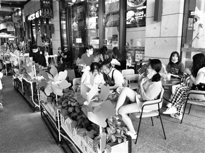 昨天,记者在餐馆聚集的五棵松华熙商业街看到,不少店家为了方便顾客乘凉而在室外露天小院摆出了桌椅,人们在配合查验健康码后便可在此就餐。随着疫情得到有效控制,更多食客走出家门外出就餐,餐饮行业也逐渐走出阴霾、迎来复苏。本报记者 孙妍 摄影报道