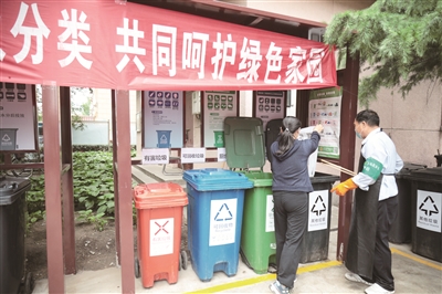 据介绍,为落实《北京市生活垃圾管理条例》,指导居民开展垃圾分类,白纸坊街道在万博苑社区开展了“垃圾分类放 生活新时尚”主题垃圾分类宣传活动。同时,万博苑社区还依照社区青年、物业公司、社区工作者、社区党员等不同身份成立了6支“垃圾分类新规”倡导队,号召居民积极行动起来,做文明行为的传播者。