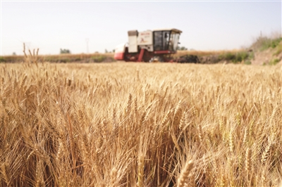 6月3日,联合收割机在河北邢台经济开发区南阳二村的麦田里作业。近期,河北省小麦陆续成熟,各地农民抓紧农时开展夏收作业。