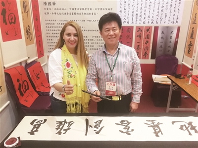 陈国华在“第八届北京特色周暨2018年地坛文化庙会·高雄之旅”活动中,书写了《两岸一家亲共圆中国梦》《艺海飘香传两岸》等书法作品,他希望以传统艺术的形式增进海峡两岸艺术工作者的友谊。