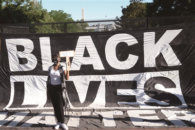 图为6月8日,美国华盛顿白宫附近的隔离围栏上贴着“黑人的命也是命”的抗议标语。