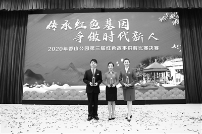 本报讯 (记者 邱勇) 近日,香山公园举办“传承红色基因 争做时代新人”红色故事讲解比赛决赛,来自公园各个岗位的青年职工近200人,经过近4个月的初赛、复赛的角逐,最终22位选手脱颖而出,站在决赛的舞台上。