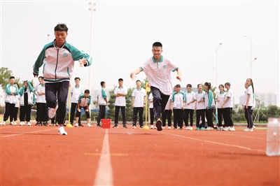 6月14日,山东青岛通济实验学校高三学生在玩运水的游戏。2020年高考临近,位于山东青岛市即墨区的青岛通济实验学校开展形式多样的集体“减压”活动,帮助高三学生释放身心压力。新华社发