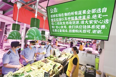 6月15日,海淀区市场监管局的执法人员来到位于西四环的五孔桥市场开展食品安全抽查。记者了解到,目前,市场监管部门将农贸市场的生鲜、冷冻猪肉、牛肉、羊肉、鸡鸭肉等畜禽肉类、水产品及其制品作为重点检查品种,全面排查食品安全隐患。