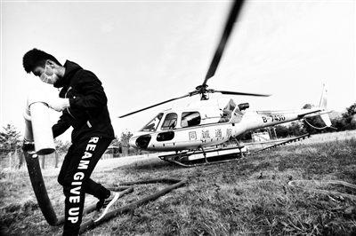 12日凌晨,一架AS350型轻型直升机喷洒出细密的白色雾滴,飞过门头沟大片山林,这是北京市林业保护站的工作人员正在开展林业有害生物飞机防治作业。记者从市园林绿化局了解到,今年全市将在丰台、大兴、海淀、顺义、昌平、房山、怀柔、通州、平谷和门头沟10个区,开展飞机防治作业,作业面积149万亩次。本报记者 边磊 于佳 摄影报道