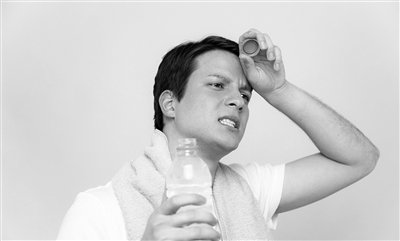 高温情况下,出现大量出汗、头晕、耳鸣、胸闷、恶心、四肢乏力、注意力不集中等症状,此时必须赶紧多喝水,到阴凉的地方休息。需要注意,喝水应该少量多次,建议先喝200-300毫升,隔半个小时再继续补充。身体过热时,不要喝冰水。
