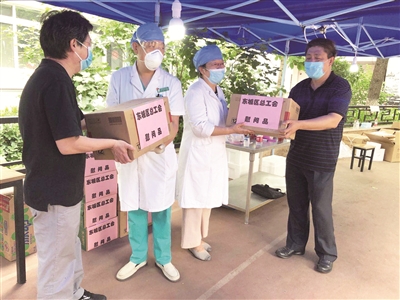 近日,东城区总工会党组书记、常务副主席赵茂杰带队慰问了北京国际职业教育学校北京站校区核酸检测点的医护人员和永外街道7天酒店集中隔离点的工作人员,为他们送去饮料等防暑降温品,并对一线医务工作者和工作人员敢于担当、坚守岗位的付出表示感谢,并叮嘱他们注意防暑降温,保护好身体。