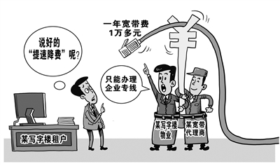 还有企业向记者反映,物业称所在楼层宽带端口不够,需要从楼上接下来,一个端口费就要2000多元;但是这一层其实有端口,有可能只是找借口额外收钱。