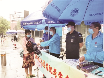自7月7日高考开始以来,德胜街道总工会工作人员始终坚守在地区北师大二附中考点外,开展“暖心伴考”活动。