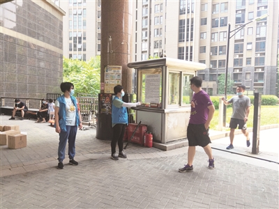 “新发地市场发生聚集性疫情之后,我们的工作又紧张起来了。”太平桥街道总工会主席孙守东说。从1月29日开始,孙守东就下沉到万润社区,站在了防疫的第一线,至今已将近半年。“防疫工作最紧张的时候是3月和4月。那时候从武汉返京的居民多,需要居家隔离。他们日常需要的蔬菜肉蛋,都是我们送到门口。他们网上订购的物品,也是我们送上楼的。”孙守东说。当新发地聚集性疫情发生后,小区里去过新发地及广外天陶红莲市场等发生疫情地方的居民又面临居家隔离生活。为了给居民提供服务,孙守东和同事们又担起了送货的任务,“我们防疫工作的微信群又热闹了。”孙守东说,这个群也是居民提需求的“联络点”。