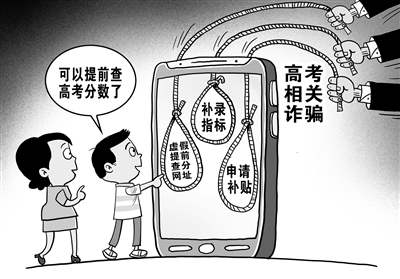 高考一结束,就有人利用非法途径获取大量考生及家长信息,以谋取钱财为目的进行诈骗。山东警方提醒考生和家长,当遇到高考“补录指标”“申请补贴”等信息时,要注意提防相关诈骗,不能盲目相信。(7月18日 新华社)□朱慧卿