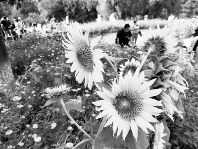 日前,奥林匹克森林公园北园的向日葵进入盛花期。由于受疫情影响,为防止人员聚集,今年种植区没有大面积栽种,不少市民仍如约而至。园方提醒游客,赏花同时注意疫情防控。本报记者 孙妍 摄影报道