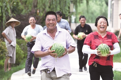 7月22日是大暑节气,浙江省湖州市吴兴区织里镇庙兜村举行了趣味“赛西瓜”比赛,迎接这个“火热”的节气。庙兜村种植有500多亩西瓜,目前正值西瓜丰收的时节,村民们用“赛西瓜”的形式,感受丰收的喜悦。 新华社发